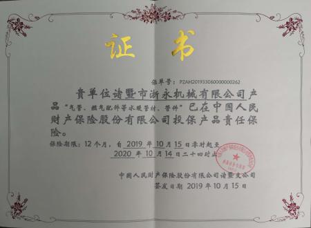 公司產品保險證書